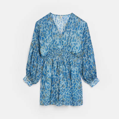 mini shirt dress in blue leopard